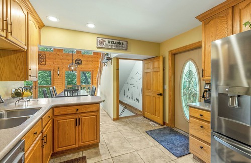 Sweet Mountain Dreams located near beautiful Lake Glenvillle has 2 living areas with 2 full kitchens, lots of windows to let in the natural light and beautiful soaring wood ceilings. Floor to ceiling windows and French doors open up to the spacious deck where you can have your morning coffee and enjoy the cool mountain breeze. The main level also includes a wood burning, stone fireplace, and one bedroom with a Queen bed. The spacious upper level ensuite bedroom has a King bed and a beautiful bright private bathroom. The lower level is equipped with a full kitchen, renovated bathroom, living area and gas burning fireplace with its own deck. The bedroom on this floor includes bunks with 3 Twins. Just a 2 minute drive down Pine Creek Rd is The Pines Recreation Area on beautiful Lake Glenville and includes a swim beach, pier, picnic tables, toilets, informational signage and more. The amenities are fully handicap accessible. The site also features a life jacket loaner board which allows visitors to check out a life jacket at no charge.