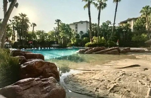 An island-inspired all-suite resort located on Las Vegas Boulevard offers plenty of activities including a well-appointed Spa, 2 nicely equipped fitness centers, an award winning Polynesian themed pool area with a one of a kind sand beach entry and a renowned Lazy River with cascading waterfall features.