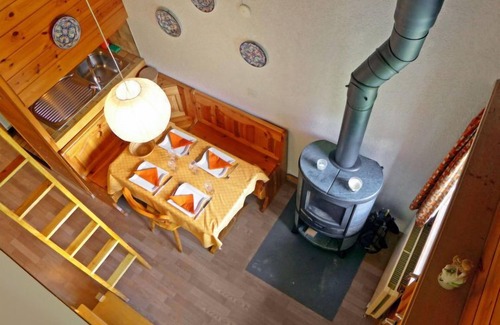 "Tarcianne Apt A6", 2-room apartment 40 m2 on 2 levels on 1st floor. Partly renovated in 2022, simple and practical furnishings: living/dining room with Scandinavian wood stove, dining table and cable TV. Exit to the balcony. Small, open kitchen (4 hot plates, oven, dishwasher, electric coffee machine, Capsules for coffee machine (Nespresso), raclette grill, fondue Set (chinoise, cheese)). Bath/WC. Upper floor: (open staircase), 1 room with 1 double bed. Exit to the balcony. (ladder) gallery with 2 beds. 2 balconies. Balcony furniture. Very beautiful view of the mountains and the countryside. Facilities: Internet (WiFi, free). Garage (extra). Please note: not suitable for small children. Non-smokers only. Instead of an enclosed bedroom, some sleeping areas are located in an open-plan area (gallery, alcove, etc.).