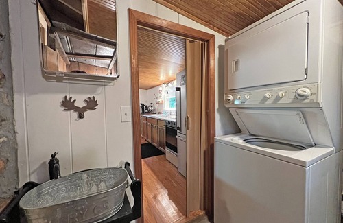 This lovely little cabin sits nestled in the woods just west of Bryson City in the Needmore community, which is close to the Nantahala River Gorge and Fontana Lake. This is the perfect spot if you're looking for an affordable, quiet little cabin to truly get away from it all. As you arrive, the porch just invites you to sit a spell in the rockers or the mountain laurel conversation set. If you need to thoroughly unwind, take a dip in the covered hot tub and you'll feel the stress melt away. There is also a covered area with gas grill, picnic area, cornhole boards, and fire pit - which allow for outdoor fun. Inside is cute as can be. The living area has a wood burning stove, which invites you to relax, watch a movie, and curl up by the warm fire. The kitchen is fully stocked and ready to whip up a nice meal right at the cabin. The bedrooms each feature a queen sized bed. The baths are where you really feel the old world country charm. The full bath has a large stand up shower and vintage vanity that has been converted to a sink vanity. The half bath is constructed to look like an outhouse with an old washbasin style sink. For guest convenience, there is a stacked washer/dryer, wireless internet, and covered outdoor dog kennel to give your pups some outdoor space to play.