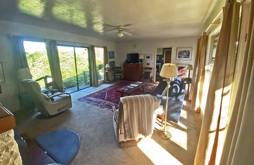 Come visit Taylor's Grove. Meandering paths lead to secret gardens, newly landscaped areas and a peak at the ocean. This two bedroom, one bath home is delightfully decorated with eclectic art and antiques. The outdoor hot tub invites you to relax after a day exploring. A short, four-minute walk takes you to a semi-private neighborhood beach where Hare Creek meets the ocean. (2022)The bottom of the beach access has eroded away with the big waves, see video on how to get down to the beach. Close to Fort Bragg, the Skunk Train, and ten minutes from Mendocino Village.