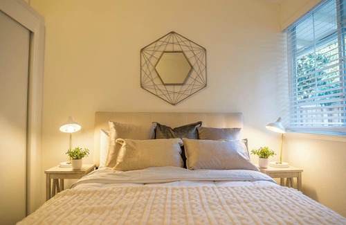 Tech Retreat: Bike-Friendly to Apple offices, Walk to Main Street Eats! is located in Rancho Rinconada. Tech Retreat: Bike-Friendly to Apple offices, Walk to Main Street Eats! provides accommodation, featuring Security/Safety, Bedding/Linens, Wellness Facilities, among other amenities. This House features Security/Safety, Bedding/Linens, Wellness Facilities, to make your stay a comfortable one.