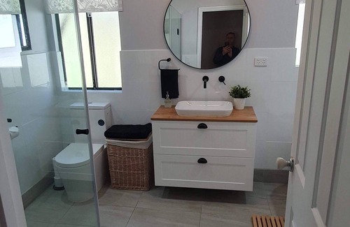 At the other end of the house there are 3 rooms, a brand new bathroom (with stylish stand alone bath, shower and toilet) and a new fully equipped laundry. Your comfort is well catered for by a wood fire for Winter, electric blankets, AC for Summer, and ceiling fans. The large well-equipped kitchen has a double door fridge-freezer, bar fridge, microwave, oven, dishwasher and sizeable pantry.