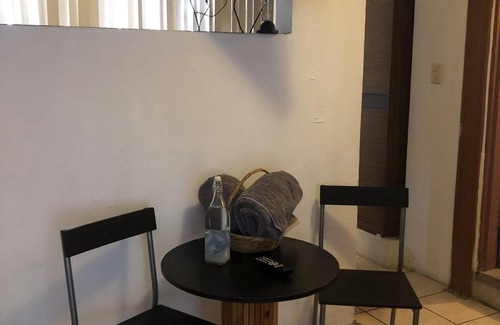 small economic room, located on the top floor, you have to climb stairs, with full private kitchenette, minibar, coffee maker, microwave, flat screen with Chrome adapter, double bed; western university area. dynamic area and nearby services such as banks supermarkets, cafeterias restaurants has a small desk and small table the room can be locked, we do not have parking and we ask for responsible use of water