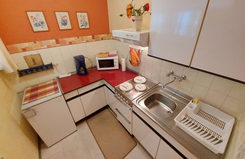 Bedroom with double bed, living room with pull-out double couch and dining area, fully equipped kitchen with coffee machine, toaster, kettle, microwave and much more, bathroom with bathtub/toilet, balcony (south) with beautiful view, satellite TV, radio-CD player, distance to the town center approx. 2 km, ski bus stop directly in front of the house.