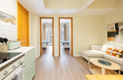 The apartment has a unique charm and personality, thanks to its stylish design. You’ll be surrounded by parks, great restaurants, local shops, and more. And to top it off, there’s a private balcony where you can relax. | Apartment in Barcelona