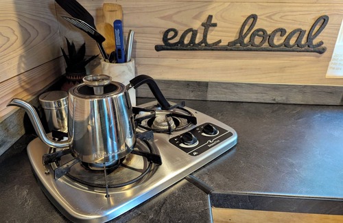AC/ French Press for Coffee / Propane Stove Top / Fridge / Propane Fireplace / BT Surround Sound system (and Bt portable speaker) /