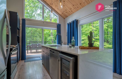 Perched on the edge of a dense forest, this modern cottage seems to be suspended in the trees. Its generous windows and privileged location in the Domaine du Grand Portneuf offer you total immersion in nature... with all the comforts you deserve. Breathtaking views, a private spa, and a cozy atmosphere: everything you need to unwind, reconnect, and savor every moment.