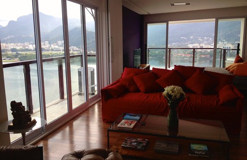 The apartment is well distributed between one master suite, a dining room, a living, three balconies, one aditional bathroom and a giant futon in the living room, where you can sleep seeing the best view of Rio. The whole apartment has stunning views of the lagoon, and there is not doubt that the look is among the best in the world.