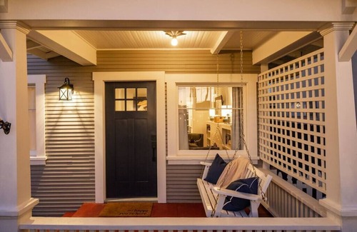 Guests have full access to their securely gated bungalow, which includes a covered front porch with a swing, a peaceful backyard equipped with a private fire pit, a picnic table, and a BBQ. Each bungalow also offers off-street parking spaces.