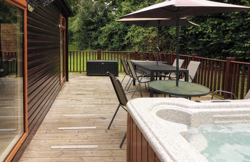 Amenities: Gas central heating. Electric oven, gas hob, microwave, fridge/freezer, dishwasher, slow cooker, air fryer kettle, toaster. Smart TV, WiFi. Fuel and power inc. in rent. Bed linen and towels inc. in rent. Highchair and travel cot available upon request. Off-road parking for 1 car with additional parking available within the resort. Enclosed decking with hot tub and furniture. Two well-behaved pets welcome. Sorry, no smoking. Shop and pub 0.3 miles (on-site). Note: On-site facilities include a shop, bar, indoor swimming pool, spa, fitness centre, a children's play area, and on-site amusements, for example, fishing, horse riding, and tennis and basketball courts; additional fees apply. Note: £40 charge per dog. Note: Starter pack includes basic cleaning, washing up products and a tea towel. Note: Guests need to bring their own toiletries. Note: Check-in: 4 pm, check-out 10 am. Note: £100 security deposit required