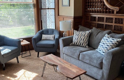 The whole group will be comfortable in this spacious and unique space. This beautiful historic apartment is close to downtown, hospitals and UWEC which has been fully updated with original woodwork. This unit has full access to the large wrap around front porch. The city bus stop is directly in front of the property, and it is walking distance to several city parks and bike paths.