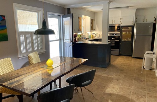 Stylish home perfect for fun group trips or an extended stay! Enjoy this freshly renovated house located in Mid-town Macon. Close to Amerson Park, Ingleside Village, the Society Garden, and only 10 minutes to either Downtown or North Macon for all the delicious restaurants, musical nightlife, and entertainment. Cool decor with many records provided for you to enjoy the refurbished 1961 Magnavox with Bluetooth compatibility. Brand new cozy beds with luxurious bedding and a fully stocked kitchen for that inner chef. Welcome!