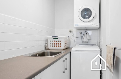 • Full laundry facilities including a top loader washing machine, dryer, clothes airer, iron and ironing board