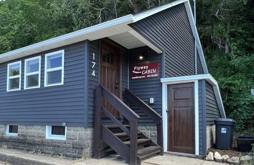 Come relax and enjoy Mississippi River views at the “Cozy” Flyway Cabin in beautiful, historic Fountain City, WI. Nestled between the bluffs and the river, the Flyway Cabin in conveniently located on Wisconsin's Great River Road and within walking distance to bars, restaurants and shops. Brand new inside and out, the Flyway cabin offers a private master bedroom with Queen bed, closet and TV, a full bathroom with tub/shower, bunk bed, dining table, fully equipped kitchen, living area, stack washer/dryer, off street parking and private fire pit/ grilling area.