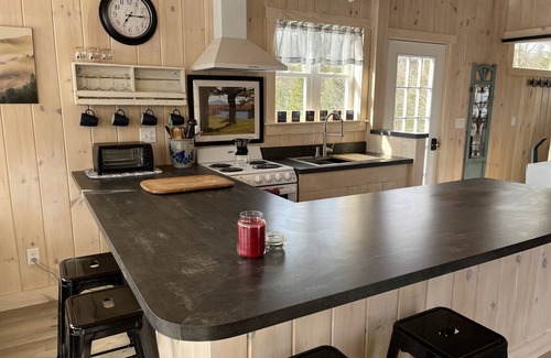 Relax at The Hamblett, a true Vermont getaway experience in the woods! Newly constructed 1 BR, 1 BA cabin with kitchen, gas stove in living room, mountain views, queen size bed, stained-glass accents, full indoor bathroom with tub & shower, two decks, and most importantly, peace and serenity! Minutes from Vermont's famous Lake Willoughby with its spectacular views, hiking, swimming, and boating... Come unwind at The Hamblett on Hinton Hill!!!