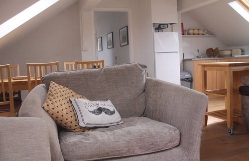 The Hayloft is all the space above our garage and stables building. There is a good size double bedroom with optional extra single bed. A cosy twin single bed room and an area that can be curtained off to use the double sofa bed. The key area is the 40 square metre main room which is communal living/dining /cooking area with a log burner and comfy couches and smart tv. The property is on a 3 acre plot with the main house with access to open fields and the Marsden Moor Estate on the doorstep. Have your breakfast out on the balcony and admire the views and spend evenings after a visit to the village in front of the log burner.