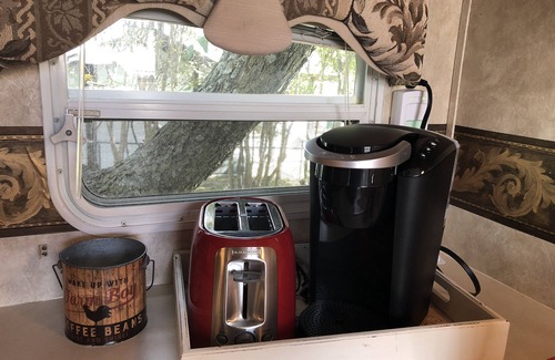 The Hideout - Charming RV in town, minutes away from Tarleton University is located in Stephenville. The Hideout - Charming RV in town, minutes away from Tarleton University provides accommodation, featuring Balcony/Terrace, Security/Safety, Fireplace/Heating, among other amenities. This House features Balcony/Terrace, Security/Safety, Fireplace/Heating, to make your stay a comfortable one.