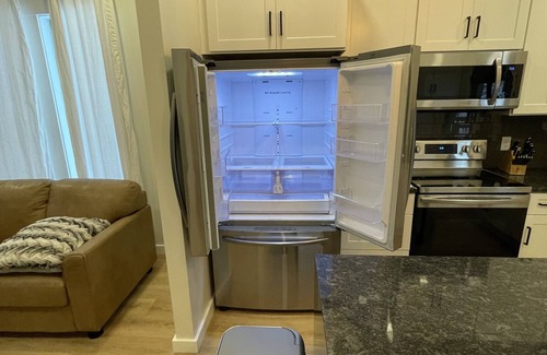 Notable features include a top-of-the-line water filtration system in the kitchen, beautiful waterfall granite counters on the kitchen island, stainless steel appliances, and a fully stocked kitchen for all of your culinary adventures.