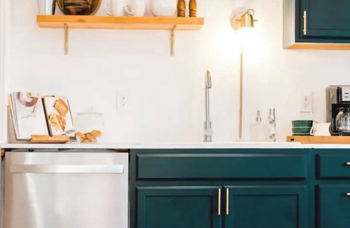"Hygge" is a Danish word meaning a quality of coziness or a feeling of well-being. This unique space used to be a woodworking shop, and has been meticulously redesigned to provide you with a comfortable stay. It's located behind our house in a quiet neighborhood, but close to the highway for easy commuting. We have wifi, a 65" Roku 4K TV, and a fully stocked kitchen!