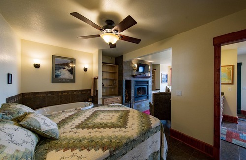 Located only 40 feet from Lake Superior s beach is the Inn at Croftville Road Cottages. This unique and newly crafted building with tall multiple gabled peaks houses 5 vacation suites all with private exterior entrances. The Inn at Croftville Road Cottages #7 provides the gentle sound of breaking waves hitting the shore and spectacular views of Superior. It is designed with romance in mind. This is a large walk-out ground level vacation suite with an open floorplan right next to Lake Superior. One enters this suite from a private lakeside patio with comfortable outdoor furniture and then steps up onto a covered entry porch with large windows looking out to Lake Superior. The dinette is in its own alcove next to the full size and well equipped kitchen. The main room features a romantic wood fireplace straddled by 2 wing back chairs you can sink into to enjoy the fire, a large window seat looking out to Superior, and counter with 4 stools that adjoins to the kitchen. To the rear of the main room is a queen bed and spa tub. Both have a great view of Lake Superior if you wish to relax in bed or soak in the tub. The bathroom area features a large walk-in closet. The suite is equipped with firewood, a smart TV and DVD player mounted above the mantle, and a radio/CD player. This four season inn suite is open all year and has wireless internet access. An artesian well provides excellent water for drinking. The Inn at Croftville Road Cottages #7 sleeps up to 3 people (1 on the window seat and best suited for a child) with all linens provided.