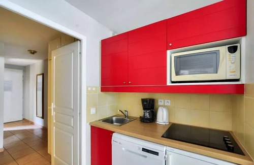 Details: Wi-Fi access : Free access Playground for children : Playground located within the residence with a swing, three mobiles and a house with slide (for children aged 2-7). Pets allowed : In some accommodation extra fee: 65 € / animal / week. 10 € / animal / day (stays from 1 to 6 nights). Baby Kit : Subject to availability: 1 baby folding bed (norm NF EN 716), 1 baby chair (from 6 months), 1 changing mattress, 1 stroller: contents may vary depending on the residences) - rates to be seen with reception Maintenance kit : Included - contents may vary according to residences: sponge, washbasin, multi-use product vial, flask of hand dishwashing liquid product, dishwasher tablet and towel. Bedding : In addition - contents may vary depending on the residences: drap-housse, sheet or duvet cover and pillowcase. Towels : Extra charge. Possibility of changing the daily linen available, ask the reception to know the rates. Beds made on arrival : Extra charge. Final cleaning : Extra charge. Must be carried out at the end of the stay, either by the guest or by paying the service at the pre-check-in or on arrival. Number of stars Car park Swimming pool : Open from May 19 to October. Heated Near airport : Bordeaux-Mérignac Airport #BOD (166.2 km), Toulouse-Blagnac Airport #TLS (121.2 km) Close trade Tourist tax (surcharge) : To be paid from your customer area, variable amount depending on the locality. Free for children under 18. Television : In all dwellings Pets Allowed : Extra charge. Balcony kettle Coffee maker Deposit (in euros) : 500 Heating Cooked Smoke detector Floor : 1 Toaster Dishwasher Bedding : Extra charge. Final Cleaning : Extra charge. Must be completed at the end of the stay, either by the customer or by paying for the service at the pre-check-in or on arrival Microwave oven Number of bedrooms : 1 Number of pieces : 2 Number of toilets : 1 Number of bathroom : 1 Car park Cooking plate Fridge Dining Room - Seating Capacity : 4 Surface (m²) : 32 Television Dishes and cutlery View : Other Internet access