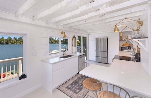 Guests will also find an additional, beautifully renovated miniature summer house with comfortable twin beds ideal for anyone looking for an extra level of privacy from the main house. This space is available seasonally as it requires warm weather to be functional and comfortable. There is also a private dock with additional seating that is perfect for swimming or launching a vessel in the lake!