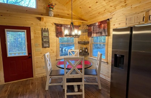 The Lazy Goat Cabin is the perfect unique place to kick back and relax. Built in 2022, this peaceful 2-bedroom, 2-bath cabin offers a rustic interior with farmhouse style furniture and décor, gas grill and firepit for sunset smores! Sit out on the screened in porch with a cup of coffee or glass of wine in hand and enjoy the local wildlife. Just 10 minutes from town, enjoy the locally owned stores and restaurants. Centrally located to rafting, canoeing/kayaking, golf, hiking, wineries and Casino.