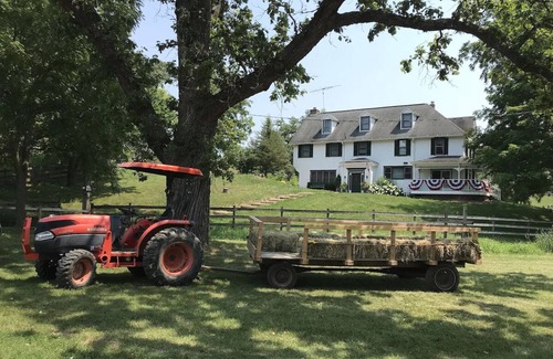Fabulous private manor house on 500 acre working cattle ranch and commercial vineyard adjacent the Galena Territory in a secluded and private pastoral setting and valley w no other houses within view and in the heart of the Galena Illinois driftless region. Close to the renowned golf courses of Eagle Ridge (less than a five minute drive to The General), Long Hollow Canopy Tours zipline and a ten minute drive to the charming historical town of Galena. No pets.