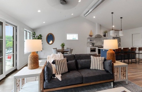 Welcome to The Lofts of Brick and Mortar, Lake Loft! Immerse yourself in the serene ambiance of this Lake-themed vacation rental. Experience the elegance of the well-appointed kitchen and cherish moments on the balcony with morning coffee or evening drinks while overlooking the bustling city below. Ideal for couples seeking an unforgettable Lake Geneva getaway. Book now and embrace the tranquility and charm of lakeside living!