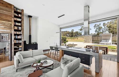 Beautiful polished tallowwood floors, timber details, a subtle colour palette and stylish decor, create a modern Australian theme. The fully equipped kitchen is a feature in itself, offering a large formed in-situ concrete island bench and modern appliances. Cozy up by the fireplace and enjoy a relaxing glass or two of Hunter Valley wine, all the while knowing that there's simply nowhere else to be.