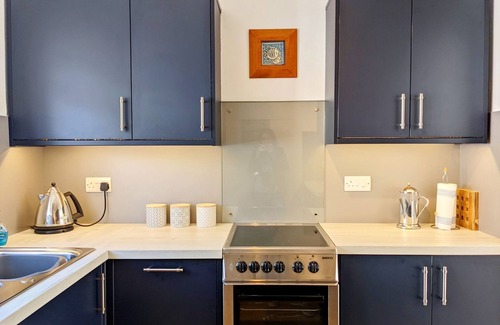 The Lookout has a newly refurbished kitchen with everything you will need during your stay when not ordering from one of the many local take outs! The kitchen includes, oven, hob, toaster, kettle and washing machine. The living room includes a dining area suitable for two or four just outside the kitchen.