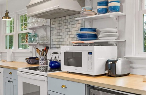 Inside this beautifully updated, modern cottage you will find a gorgeously designed open concept kitchen/dining/living great room with vaulted ceilings and exposed beams over the living room. The amazing live edge kitchen table can seat up to 8 people. Kitchen is fully equipped to cook meals. Master bedroom has king size bed with dresser and closet to store clothing. Two large HDTV's with cable and Netflix capabilities are mounted in the living room and the master bedroom. The adjacent guest bedroom has twin over full size bunk beds that can sleep children or adults. Additional closet and dresser in guest bedroom are available for clothing. Gorgeous bathroom is located on first floor and has combo bathtub/shower. Upstairs children's loft has two twin beds and is whimsically designed in a way that children will want to spend time there! Large queen size sofa bed in living room can sleep and additional 2 adults. Linens are provided for sofa bed! Spacious screened in porch with dining table that seats up to 10 people. Additional patio furniture in screened in porch can seat up to 9 people providing the perfect outdoor living space.