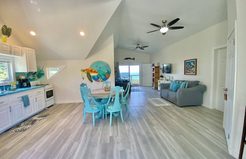 6) *The office / 3rd bedroom provides an open living concept with a desk, power supply & fast WiFi for remote working, as well as a full size Murphy bed to accommodate additional guests. The family room & master bedroom are equipped with 4 panel sliding doors to enjoy the fresh island air and ocean