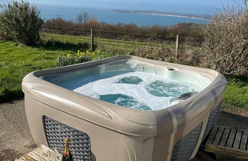 This is a small brick built building set on a hill at Shortlake Farm just to the south of the village. It is built on the site of a WWII gun battery, and commands panoramic views over Weymouth & Portland, and out across the English Channel. It is located just off a quiet no-through-road, up a gravel track, and is surrounded by pasture. From the cottage, you can find The Smugglers Inn, and a couple of small shops, which are approximately just a 5 minute, walk away. The walk to Shortlake Farm's private beach takes just 5 minutes or so across the fields. The property can sleep up to 7 guests (one double bed in the main bedroom, one bunk bed and a pull out in the conservatory and a double bed in the Shepherds Hut). Outside is a small patio area with a hot tub and table and chairs which overlooks Weymouth Bay, and continues beyond onto grassy fields. The pictures speak for themselves - 180 degree plus uninterrupted views over the surrounding sea and coastline. Around the property are fields belonging to the farm where we graze sheep and occasionally cattle. Well-behaved pets are welcome at Shortlake Cottage, and guests can borrow a dog from Eweleaze Farm for the day. Please note that unless specified, we will make up the double in the main bedroom.