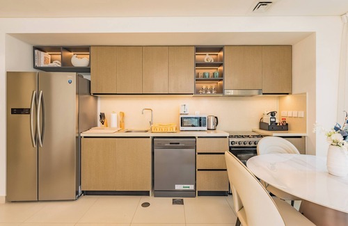 Immerse yourself in the chic Parisian décor, while indulging in the apartment's fully equipped kitchen, complete with high-quality cookware and all essential cleaning supplies and linen. Whether you're visiting for business or pleasure, the Paris condo offers a perfect blend of sophistication, comfort, and playful sophistication for an unforgettable stay in Dubai.