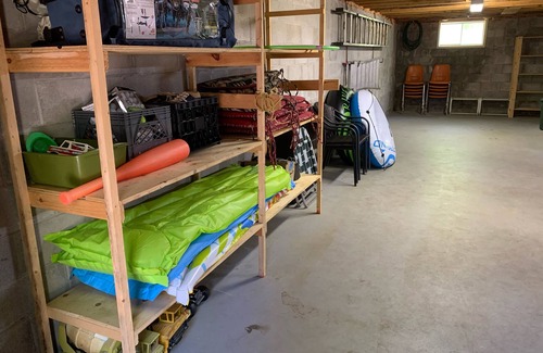 The chalet has three bedrooms, a loft with two double beds . There is a fully equipped kitchen(minus a dishwasher), BBQ and the cottage is wifi enabled. The spacious living room has a flat screen smart T.V. and board games are available. The basement is outfitted with a ping pong table and there are plenty of available inflatable water toys to enjoy.