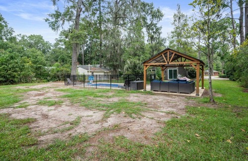 Welcome to The Pineapple House, a charming retreat nestled in a serene neighborhood just five miles from the bustling River Street. This spacious 2,100-square-foot home sits on a beautifully treed half-acre lot and has been recently remodeled and thoughtfully furnished. Enjoy the luxury of a brand-new private pool, perfect for cooling off on warm days. When you're not in the pool, explore the lush grounds or unwind with a lazy afternoon nap in the hammock.