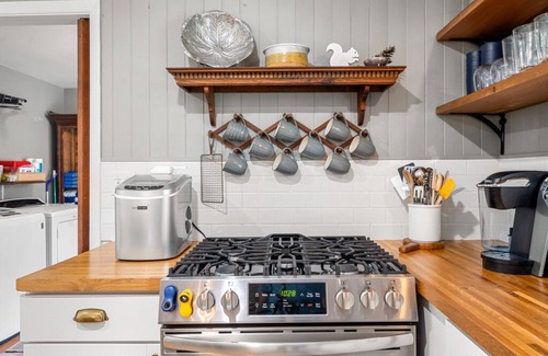 Spend the day swimming relaxing in the hot tub. The large back deck is perfect for enjoying your morning coffee or and evening glass of wine while enjoying the lush and green backyard. At night, gather around the stone fire pit while you listen to the sounds of the nearby creek.