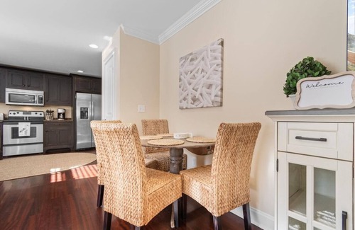 All bedrooms include flat-screen TVs, two nightstands, lamps, sound machines, dressers, and fresh linens. Both bathrooms are equipped with a blow dryer and lighted magnifying mirror. A washer/dryer and clothes steamer are also available for guest use.