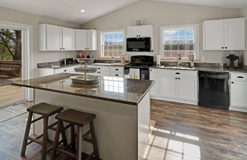 Beautiful modern kitchen with all the amenities..The large country-style dining table seats 18 + people easily. 2 large decks overlooking the breathtaking countryside. The first floor has 2 full living rooms with comfortable and plush leather sofas. Large wall-mounted flat screens will have you feeling like you are home. Every TV in this house has a separate Roku remote so everyone can enjoy their favorite shows. The first floor is home to two queen en-suite’s, Plenty of storage space for clothing and baseball gear. The laundry room is located on the first floor along with a full bathroom.