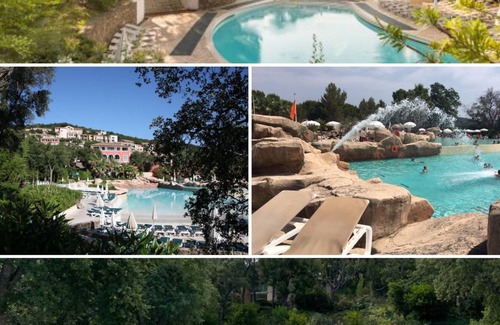 Located in a secure Pierre et Vacances residence on the heights of Grimaud with 2 swimming pools (one of which is wave + water slides), numerous activities for adults and children (entertainment and club, tennis, basketball ...),