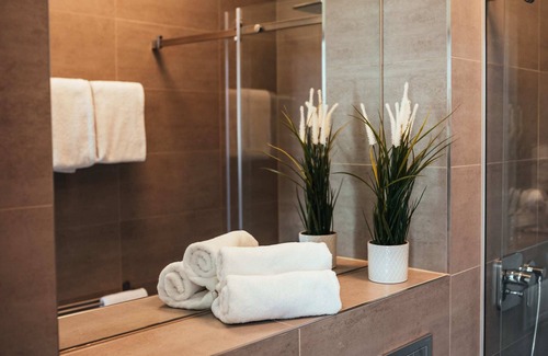 The light-flooded studios are about 23 sqm in size and convince with floor-to-ceiling windows and a modern design. The 1 room apartment offers space for up to 4 people and is equipped with a large double bed, Smart TV, comfortable sofa elements that can be converted into single beds and a dining table. The integrated kitchenette has 2 hobs, microwave, toaster, kettle. The spacious bathroom includes a ground-level rain shower, toilet and hairdryer. Free Wi-Fi is available throughout the studio. Studio categories differ by the arrangement of the beds.