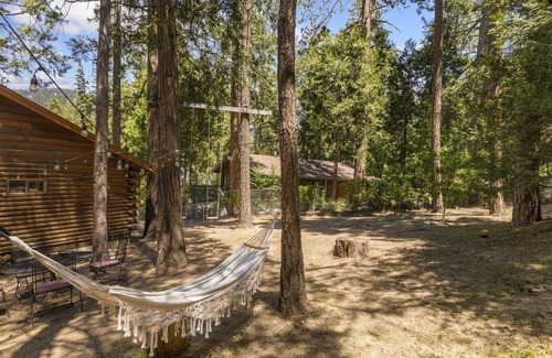 On the elevated front porch, just outside the front door is a sitting area and BBQ grill with great views of the mountains. On the backyard you'll find 2 swings, a hot tub and a hammock nestled between the pine trees.