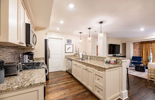 Historic French Quarter apartment with two bedrooms, two baths, and a queen sleeper sofa. Each bedroom features king size beds. Full stocked with all living essentials and tastefully decorated to feel truly at home!