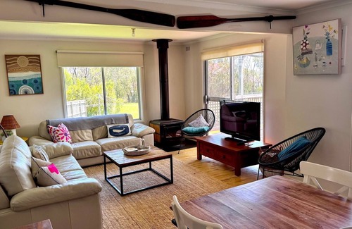 The property features a bright open plan dining, kitchen and lounge area with a new spiltsystem cooling/heating, leading out to the decking area. This beachy shack is very homely and inviting.