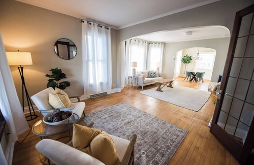 Discover modern comfort in this 3BR, 1.5BA gem in central West Allis, WI. Spacious and fully furnished, enjoy craftsman woodwork, modern decór, and an abundance of light flooding through oversize windows. Walk to shops, dining, and nightlife. Within 5 miles of several major regional medicals centers! Master BR with office, porch, and outdoor dining area. Local, experienced hosts, ultra high-speed internet, and smart TVs make this the perfect blend of style and convenience. Book today!