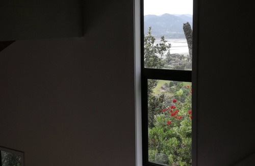 Our bach is nestled among the tree tops, overlooking the Tairua Harbour, Pauanui, and out to sea towards Shoe and Slipper Islands.