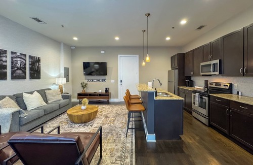 Welcome to THE TENNESSEE WHISKEY! Nestled in the outskirts of Broadway, this one-bedroom condo has a king bed and a queen size sleeper sofa, comfortably accommodating up to 4 guests. Perfect for romantic getaways, small families/friend groups, and business travelers.