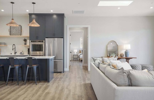 A short stroll away, the Cottage Retreat offers a cozy yet refined setting with a 3-bedroom, 3-bath main house and an additional 1-bedroom, 1-bath ADU. This charming retreat provides its own private spaces and amenities, including hot tubs and intimate outdoor areas, making it perfect for smaller groups within your party or those seeking a bit of extra privacy.